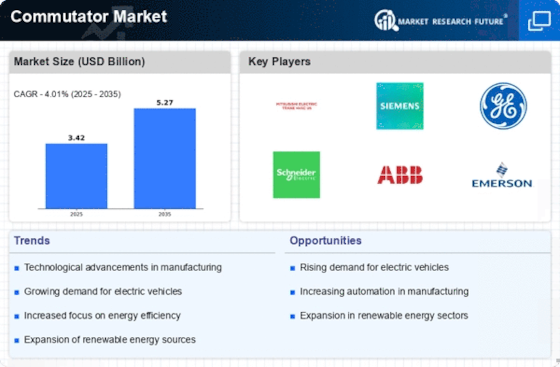 The expansion of the renewable energy sector is another crucial driver influencing the Commutator Market. As the world shifts towards sustainable energy sources, the demand for wind turbines and solar power systems is on the rise. These systems often utilize commutators in their generators to convert mechanical energy into electrical energy efficiently. In 2025, the renewable energy market is anticipated to exceed 1 trillion USD, which could lead to increased production of commutators tailored for these applications. This growth presents opportunities for manufacturers to innovate and develop specialized commutators that enhance the efficiency and reliability of renewable energy systems.