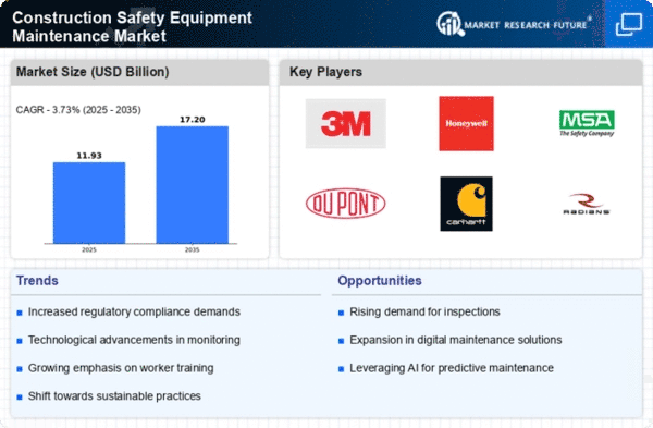 The competitive landscape in North America is robust, featuring key players such as 3M, Honeywell, and MSA Safety. The U.S. is the leading country, supported by a strong regulatory framework that mandates safety compliance. Companies are investing in R&D to enhance product offerings, ensuring they meet the evolving needs of the construction industry. This dynamic environment positions North America as a critical hub for safety equipment maintenance.