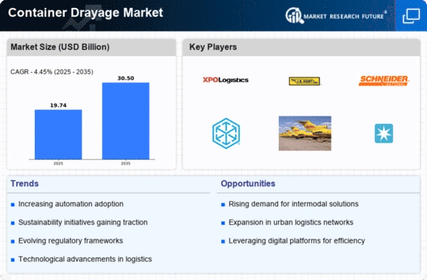 The Container Drayage Market is currently characterized by a dynamic competitive landscape, driven by factors such as increasing global trade, the rise of e-commerce, and the need for efficient supply chain solutions. Major players like XPO Logistics (US), J.B. Hunt Transport Services (US), and Maersk (DK) are strategically positioning themselves through innovation and digital transformation. XPO Logistics (US) has focused on enhancing its technology platform to improve operational efficiency, while J.B. Hunt Transport Services (US) emphasizes sustainability in its operations, aiming to reduce carbon emissions. Maersk (DK) is also investing heavily in digital solutions to streamline its logistics processes, which collectively shapes a competitive environment that prioritizes technological advancement and sustainability.Key business tactics within the Container Drayage Market include supply chain optimization and localized service offerings. The market structure appears moderately fragmented, with several key players exerting influence over regional operations. This fragmentation allows for a variety of service offerings, yet the collective strategies of major companies create a competitive pressure that drives innovation and efficiency across the sector.