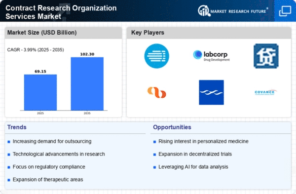 The trend towards outsourcing research and development activities is a significant driver of the Contract Research Organization Services Market. Pharmaceutical and biotechnology companies are increasingly recognizing the benefits of partnering with CROs to enhance operational efficiency and reduce costs. By outsourcing clinical trials and other research functions, these companies can focus on their core competencies while leveraging the expertise of CROs. Market data indicates that the outsourcing of clinical trials is expected to grow, with a substantial percentage of trials now being conducted by CROs rather than in-house teams. This shift not only allows for better resource allocation but also accelerates the drug development timeline, making CROs indispensable in the current research environment.