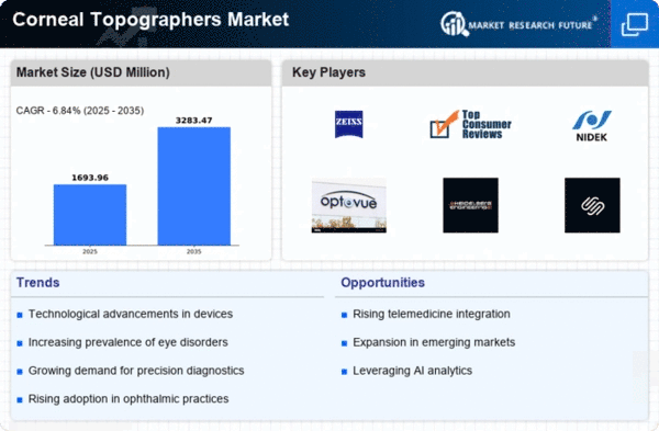 North America continues to lead the Corneal Topographers Market, holding a significant share of 793.0M in 2024. The growth is driven by increasing prevalence of eye disorders, advancements in technology, and a robust healthcare infrastructure. Regulatory support for innovative medical devices further fuels demand, ensuring that the region remains at the forefront of market development. The focus on patient-centric care and enhanced diagnostic capabilities is also a key driver of growth. The competitive landscape in North America is characterized by the presence of major players such as Bausch + Lomb and Optovue, alongside established companies like Carl Zeiss and Topcon. The U.S. is the leading country, contributing significantly to market revenue. The region's emphasis on research and development, coupled with strategic partnerships among key players, enhances its market position, ensuring sustained growth and innovation in corneal topography solutions.