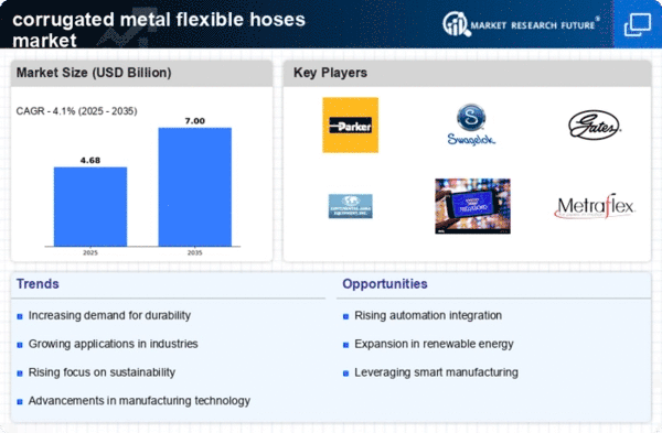 The Middle East and Africa (MEA) region is gradually developing its corrugated metal flexible hoses market, with a market size of 0.35 million units in 2024. The growth is driven by increasing industrial activities, particularly in oil and gas, and a rising focus on infrastructure development. Regulatory frameworks are evolving to enhance safety standards, which is expected to further stimulate market demand. The region's diverse economic landscape presents unique opportunities for market players. Countries like the UAE and South Africa are leading the market, with a mix of local and international companies operating in the space. The competitive landscape is characterized by a growing number of entrants, focusing on innovation and quality. As the region continues to develop, the demand for flexible hoses is expected to rise, driven by both industrial and commercial applications.