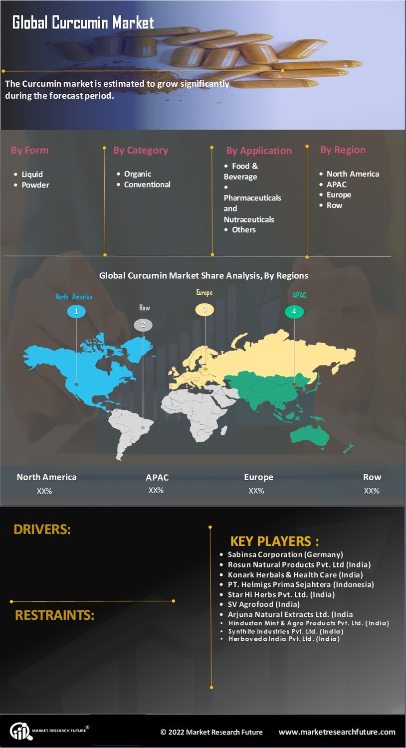 The Curcumin Market is experiencing a notable surge in demand due to the increasing health consciousness among consumers. As individuals become more aware of the benefits associated with natural ingredients, curcumin, derived from turmeric, is gaining traction for its anti-inflammatory and antioxidant properties. This shift towards preventive healthcare is reflected in the rising sales of dietary supplements and functional foods containing curcumin. According to recent data, the market for curcumin-based products is projected to grow at a compound annual growth rate of approximately 8% over the next five years. This trend indicates a robust potential for expansion within the Curcumin Market, as consumers actively seek out natural alternatives to synthetic pharmaceuticals.
