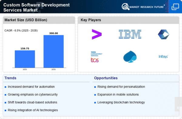 The Middle East and Africa region, with a market size of 5.0, is witnessing gradual growth in the Custom Software Development Services sector. The expansion is driven by increasing digital adoption, government initiatives to promote technology, and a growing demand for customized software solutions. Countries like the UAE and South Africa are leading the charge, with investments in IT infrastructure and digital services. Regulatory frameworks are evolving to support innovation, creating opportunities for software development firms.