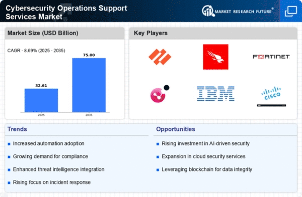 The Asia-Pacific region is witnessing a burgeoning Cybersecurity Operations Support Services market, estimated at 5.0 in 2025. Factors such as rapid digitalization, increasing cyber threats, and government initiatives to enhance cybersecurity frameworks are driving this growth. Countries are investing heavily in cybersecurity infrastructure to protect critical assets and ensure data privacy, reflecting a growing awareness of cyber risks.