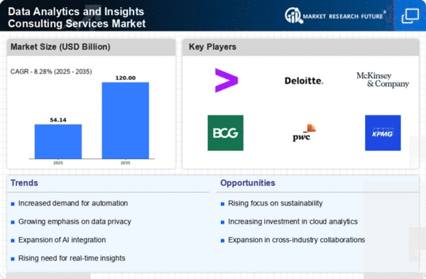 North America continues to lead the Data Analytics and Insights Consulting Services Market, holding a significant market share of 25.0 in 2024. The region's growth is driven by rapid technological advancements, increasing demand for data-driven decision-making, and supportive regulatory frameworks. Companies are investing heavily in analytics to enhance operational efficiency and customer engagement, further propelling market expansion.