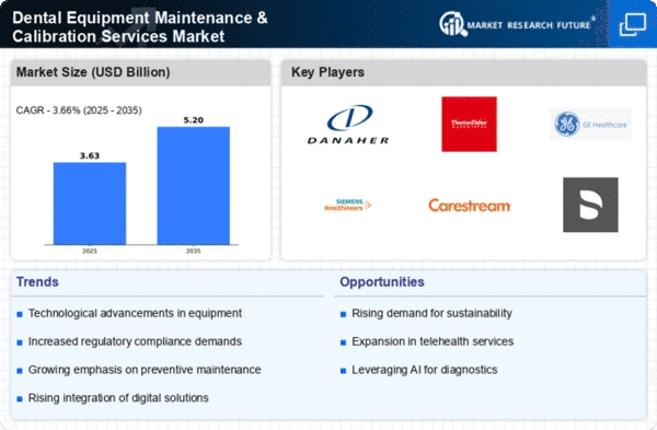 The competitive landscape is characterized by major players such as Danaher Corporation, GE Healthcare, and Dentsply Sirona Inc., which dominate the market. The U.S. is the leading country, contributing significantly to the regional market share. The presence of advanced healthcare infrastructure and a high number of dental practices further enhance the demand for maintenance and calibration services.