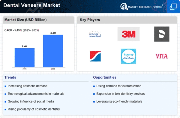 Europe's dental veneers market is on an upward trajectory, with a market size of €0.75 billion in 2024. The growth is attributed to increasing disposable incomes and a rising focus on aesthetic dental solutions. Regulatory frameworks in various countries support the adoption of advanced dental technologies, enhancing patient access to quality care. The demand for minimally invasive procedures is also a significant driver, as patients prefer options that require less time and recovery. Leading countries in this region include Germany, France, and the UK, where the presence of established dental manufacturers like Vita Zahnfabrik and Coltene Holding strengthens the market. The competitive landscape is characterized by a mix of local and international players, fostering innovation and quality improvements. As European consumers become more health-conscious, the demand for dental veneers is expected to grow, supported by favorable regulations and technological advancements.