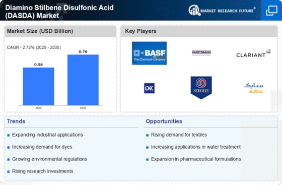 The Diamino Stilbene Disulfonic Acid Market is experiencing a notable increase in demand, particularly from the textile sector. DASDA is widely utilized as a fluorescent whitening agent in textiles, enhancing the brightness and appeal of fabrics. As the global textile industry continues to expand, driven by increasing consumer preferences for vibrant and visually appealing products, the demand for DASDA is likely to rise. Reports indicate that the textile industry is projected to grow at a compound annual growth rate (CAGR) of approximately 4.5% over the next few years. This growth is expected to directly influence the consumption of DASDA, as manufacturers seek to improve the quality and aesthetics of their products. Consequently, the rising demand in the textile industry serves as a significant driver for the DASDA market.