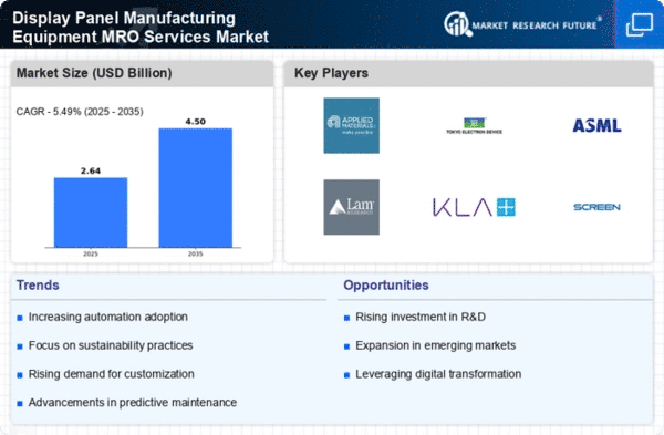 The competitive environment in Asia-Pacific is intense, with major players such as Tokyo Electron, Hitachi High-Technologies, and Nikon Corporation dominating the market. These companies are continuously innovating to meet the rising demand for high-quality display panels. The region's focus on R&D and collaboration among industry stakeholders is pivotal in maintaining its leadership position in The Display Panel Manufacturing Equipment MRO Services.