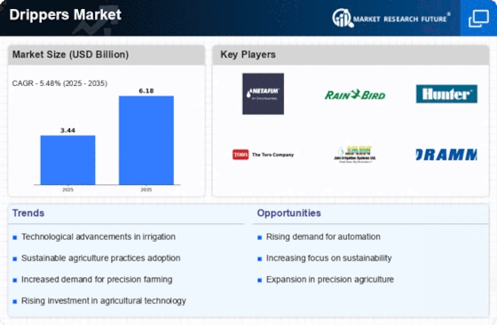 The Drippers Market is currently experiencing a surge in technological innovations that enhance irrigation efficiency. Advanced dripper systems, such as pressure-compensating drippers, are gaining traction due to their ability to deliver water uniformly across varying topographies. This technology not only optimizes water usage but also minimizes wastage, aligning with the increasing emphasis on sustainable agricultural practices. Furthermore, the integration of smart irrigation systems, which utilize sensors and IoT technology, is transforming traditional irrigation methods. These innovations are projected to drive market growth, as they offer farmers precise control over water application, potentially increasing crop yields and reducing operational costs. As a result, the Drippers Market is likely to witness a robust expansion fueled by these advancements.