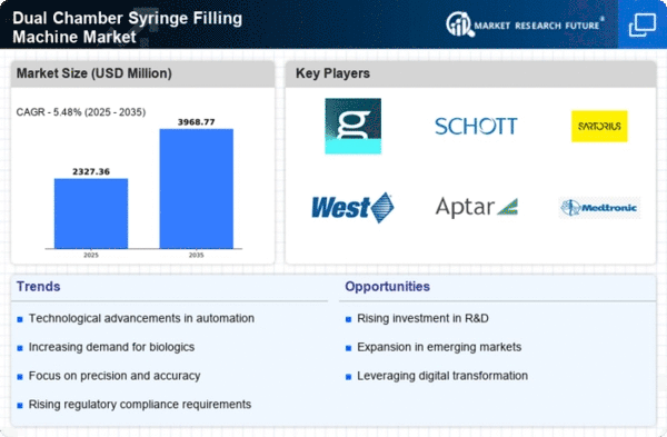Asia-Pacific is emerging as a significant player in the Dual Chamber Syringe Filling Machine market, with a market size of 400.0. The region's growth is driven by increasing healthcare investments, a rising population, and a growing focus on advanced medical technologies. Governments are implementing policies to improve healthcare infrastructure, which is expected to further boost demand for dual chamber syringes as part of modern drug delivery systems.