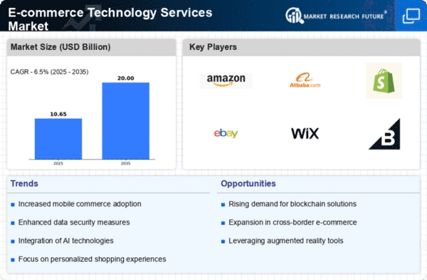 The integration of advanced payment solutions is a pivotal driver in the E-commerce Technology Services Market. As consumers increasingly demand seamless and secure transactions, businesses are compelled to adopt innovative payment technologies. This includes the implementation of digital wallets, contactless payments, and cryptocurrency options. According to recent data, the digital payment segment is projected to grow at a compound annual growth rate of over 12 percent, indicating a robust shift towards electronic transactions. This trend not only enhances customer experience but also reduces cart abandonment rates, thereby driving revenue growth for e-commerce platforms. Consequently, the adoption of sophisticated payment solutions is likely to remain a critical focus for companies operating within the E-commerce Technology Services Market.
