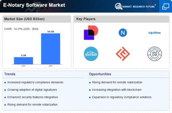 Security remains a paramount concern in the E-Notary Software Market. The integration of advanced security features, such as blockchain technology and multi-factor authentication, is becoming increasingly prevalent. These enhancements not only protect sensitive information but also instill confidence in users regarding the integrity of the notarization process. As cyber threats continue to evolve, the demand for robust security measures is expected to rise. Market analysis suggests that companies investing in these technologies may see a competitive advantage, as clients prioritize secure solutions when selecting E-Notary Software.