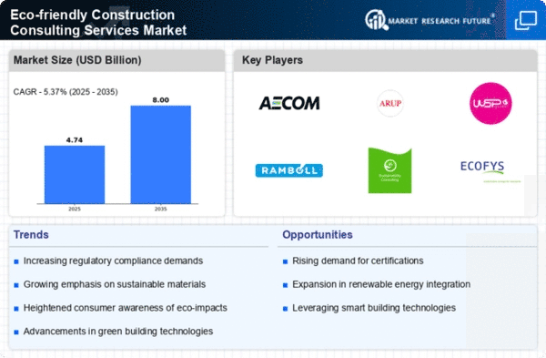 Europe's Eco-friendly Construction Consulting Services market is valued at €1.5 billion, driven by a strong regulatory framework promoting sustainability. The European Union's Green Deal and various national policies are pushing for reduced carbon footprints in construction, creating a favorable environment for eco-friendly consulting services. The increasing awareness of climate change impacts is also driving demand for sustainable building solutions across the region.