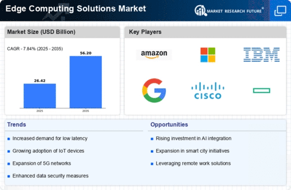 The Edge Computing Solutions Market experiences a notable surge in demand for real-time data processing capabilities. As organizations increasingly rely on instantaneous data analysis for decision-making, the need for edge computing solutions becomes paramount. This trend is particularly evident in sectors such as manufacturing and healthcare, where timely insights can significantly enhance operational efficiency and patient outcomes. According to recent estimates, the edge computing market is projected to reach a valuation of approximately 20 billion dollars by 2026, driven by the necessity for low-latency data processing. Consequently, businesses are investing in edge computing technologies to facilitate faster data handling and improve overall performance, thereby propelling the growth of the Edge Computing Solutions Market.