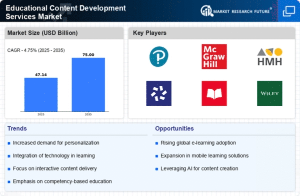 The Middle East and Africa region, with a market size of $2.5 billion in 2025, presents untapped opportunities in the Educational Content Development Services market. The growth is driven by increasing investments in education and a focus on improving literacy rates. Governments are implementing policies to enhance educational access and quality, which is crucial for the region's socio-economic development.