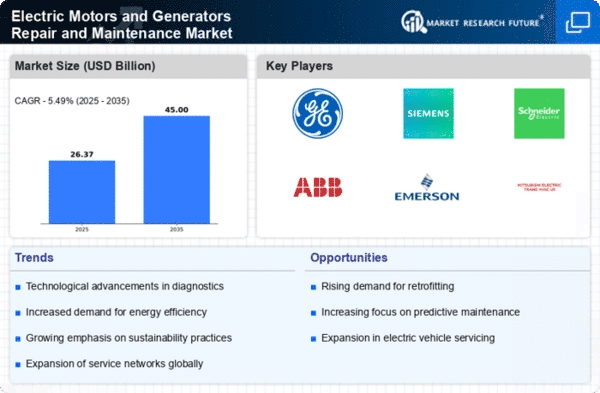 The Middle East and Africa region, with a market size of 2.0, is gradually emerging in the Electric Motors and Generators Repair and Maintenance Market. The growth is primarily driven by increasing industrial activities, particularly in oil and gas, mining, and manufacturing sectors. Government initiatives aimed at diversifying economies and enhancing infrastructure are also contributing to the demand for repair services, making this region a potential growth area.