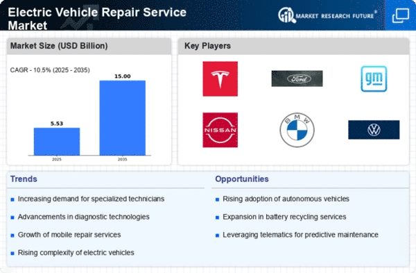 Europe is rapidly evolving into a significant player in the Electric Vehicle Repair Service Market, with a market size of $1.5B projected for 2025. The region benefits from stringent environmental regulations and ambitious EV targets set by the EU, driving demand for specialized repair services. Incentives for EV adoption and a growing network of charging stations are also key growth drivers.