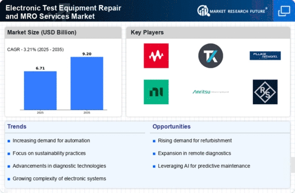 Europe's Electronic Test Equipment Repair and MRO Services Market is valued at 1.8B, reflecting a growing demand for testing services across various industries. The region benefits from stringent regulations aimed at ensuring product quality and safety, which drive the need for reliable testing and maintenance services. Additionally, the increasing adoption of advanced technologies in sectors like automotive and telecommunications is propelling market growth.