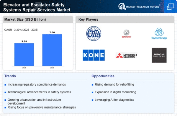 Europe's Elevator and Escalator Safety Systems Repair Services Market is valued at 1.5 billion, driven by stringent safety regulations and a growing emphasis on maintenance. The European Union's directives mandate regular inspections and compliance, fostering a culture of safety that boosts service demand. The region's aging infrastructure necessitates upgrades and repairs, further enhancing market potential.