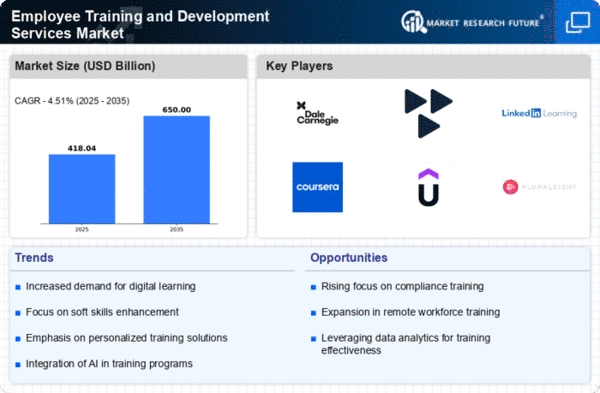 The Middle East and Africa region, with a market size of 20.0, presents untapped potential in the Employee Training and Development Services Market. The growth is primarily driven by increasing awareness of the importance of workforce training and development, alongside government initiatives aimed at enhancing educational standards. The region is witnessing a gradual shift towards investing in human capital, which is essential for economic diversification and growth.