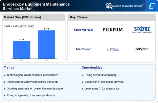 The increasing preference for minimally invasive procedures is a notable driver for the Endoscopy Equipment Maintenance Services Market. As healthcare providers adopt advanced endoscopic techniques, the demand for reliable and well-maintained endoscopy equipment escalates. This trend is supported by data indicating that minimally invasive surgeries have been associated with shorter recovery times and reduced hospital stays. Consequently, healthcare facilities are investing in maintenance services to ensure their equipment operates at optimal levels. The market for endoscopy equipment maintenance services is projected to grow as hospitals and clinics prioritize patient safety and operational efficiency, thereby enhancing the overall quality of care.
