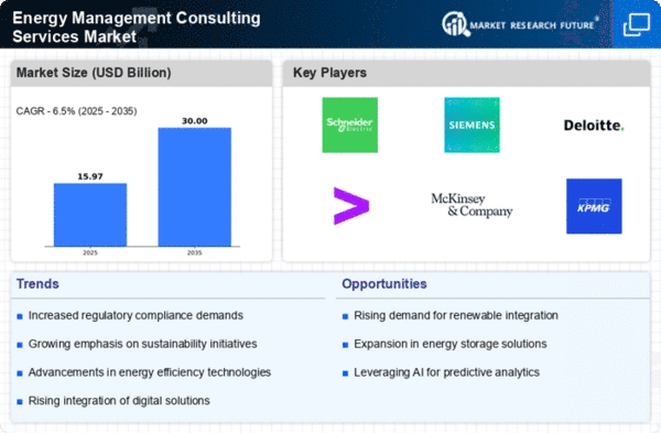 Regulatory pressures are a significant driver for the Energy Management Consulting Services Market. Governments worldwide are implementing stricter regulations aimed at reducing carbon emissions and promoting energy efficiency. Organizations are required to comply with these regulations, which often necessitates the adoption of comprehensive energy management strategies. Consulting services play a vital role in helping businesses navigate the complex landscape of energy regulations and ensure compliance. The Energy Management Consulting Services Market is likely to experience growth as companies seek expert assistance in understanding and adhering to these evolving regulations. Recent data indicates that non-compliance can result in substantial fines, further incentivizing organizations to invest in consulting services that can guide them through the compliance process.
