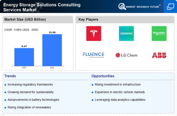 The competitive landscape in North America is robust, featuring key players like Tesla, Fluence, and ABB. The U.S. stands out as a leader, with states like California implementing ambitious energy storage targets. The presence of major corporations and innovative startups fosters a dynamic environment for consulting services. As the market matures, collaboration between technology providers and utilities is expected to drive further advancements in energy storage solutions.