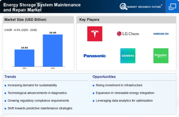 The Middle East and Africa region is in the nascent stages of developing its Energy Storage System Maintenance and Repair Market, with a market size of $0.5 billion anticipated by 2025. The region's growth is primarily driven by increasing investments in renewable energy projects and a growing awareness of energy efficiency. Governments are beginning to implement policies that support the adoption of energy storage technologies, which is crucial for enhancing energy security and sustainability in the region.