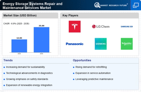 The Middle East and Africa region is gradually emerging in the Energy Storage Systems Repair and Maintenance Services Market, with a market size of $0.6 billion anticipated by 2025. The growth is driven by increasing investments in renewable energy projects, particularly solar and wind, and the need for reliable energy storage solutions to support these initiatives. Governments are recognizing the importance of energy storage in achieving energy security and sustainability goals, which is catalyzing market development.