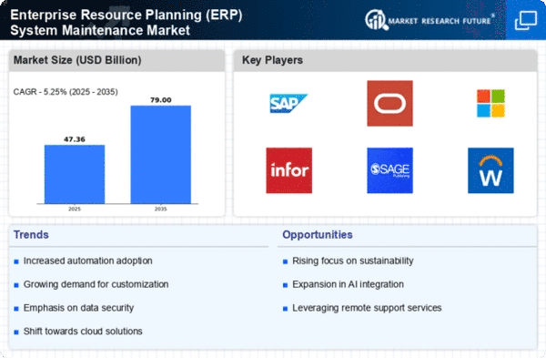 The Middle East and Africa (MEA) region, with a market size of $2.5 billion, is gradually emerging in the ERP System Maintenance sector. The growth is driven by increasing investments in IT infrastructure and a growing recognition of the importance of ERP systems for business efficiency. Regulatory frameworks are also evolving, encouraging organizations to adopt comprehensive ERP solutions and maintenance services.
