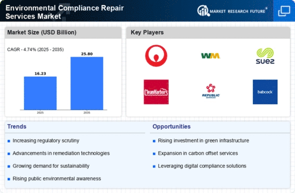 Europe's Environmental Compliance Repair Services Market is valued at €4.5 billion, driven by rigorous environmental regulations and a commitment to sustainability. The European Union's Green Deal and various national policies promote compliance services, creating a favorable environment for market growth. Increasing public awareness of environmental issues and corporate sustainability initiatives further enhance demand for compliance solutions across industries.