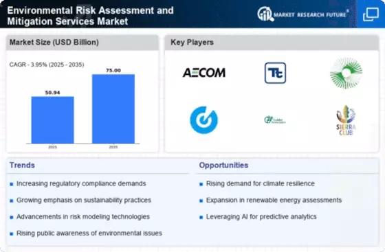 The Environmental Risk Assessment and Mitigation Services Market is characterized by a dynamic competitive landscape, driven by increasing regulatory pressures and a growing emphasis on sustainability. Key players such as AECOM (US), Tetra Tech (US), and ERM (GB) are strategically positioned to leverage their expertise in environmental consulting and risk management. AECOM (US) has focused on expanding its digital capabilities, integrating advanced analytics into its service offerings, which enhances its competitive edge. Tetra Tech (US) emphasizes innovation through technology-driven solutions, particularly in water resource management, while ERM (GB) has been actively pursuing strategic partnerships to bolster its service portfolio, particularly in climate risk assessment. Collectively, these strategies indicate a trend towards enhanced service delivery and a more integrated approach to environmental risk management.
