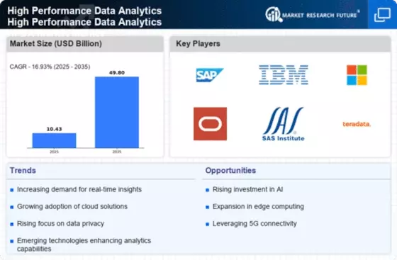 The Europe High Performance Data Analytics High Performance Data Analytics HPDA market Market is experiencing a notable surge in demand for real-time analytics. Organizations across various sectors, including finance, healthcare, and retail, are increasingly relying on real-time data insights to enhance decision-making processes. According to recent statistics, the market for real-time analytics in Europe is projected to grow at a compound annual growth rate (CAGR) of approximately 25% over the next five years. This growth is driven by the need for businesses to respond swiftly to market changes and customer preferences. As a result, companies are investing in high-performance data analytics solutions that can process vast amounts of data in real-time, thereby improving operational efficiency and customer satisfaction.
