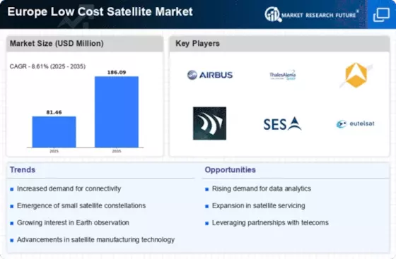The growing demand for satellite-based services is a significant driver of the Europe Low Cost Satellite Market. As industries such as agriculture, transportation, and telecommunications increasingly rely on satellite data for operational efficiency, the need for affordable satellite solutions has surged. In 2025, the demand for satellite imagery and data analytics services in Europe is projected to exceed 2 billion euros, driven by sectors seeking to leverage satellite technology for improved decision-making. This trend is further fueled by advancements in data processing and analytics, which enhance the value of satellite data. The increasing reliance on satellite-based services indicates a robust market potential for low-cost satellite providers, as they can offer competitive solutions tailored to the needs of various industries. Thus, the growing demand for these services is likely to propel the growth of the Europe Low Cost Satellite Market.