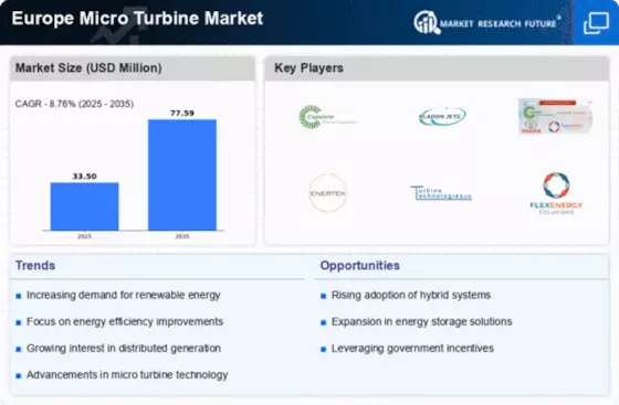 Spain represents 2.5% of the European micro turbine market, with growing interest in clean energy solutions driven by government policies and rising energy costs. Urban areas, particularly Madrid and Barcelona, are seeing increased adoption of micro turbines for decentralized energy generation. The competitive landscape includes both local and international players, fostering innovation and collaboration. The Spanish government’s commitment to renewable energy targets is a significant driver for market growth, encouraging investments in micro turbine technologies across various sectors.