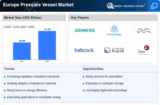 Germany holds a dominant market share of 3.5% in the European pressure vessel market, valued at approximately €1.5 billion. Key growth drivers include a robust manufacturing sector, increasing investments in renewable energy, and stringent safety regulations. The demand for pressure vessels is rising due to the expansion of the chemical and petrochemical industries, alongside government initiatives promoting energy efficiency and sustainability. Infrastructure development, particularly in industrial zones, further supports market growth.