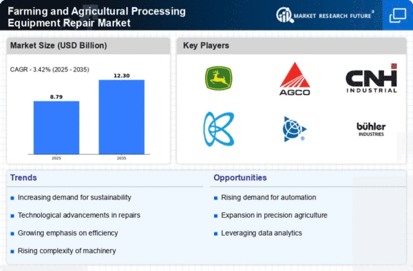 Europe's Farming and Agricultural Processing Equipment Repair Market is valued at $2.8 billion, driven by increasing demand for efficient farming solutions and stringent environmental regulations. The region is witnessing a shift towards precision agriculture, which enhances the need for specialized repair services. Government initiatives promoting sustainable practices are also contributing to market growth, creating a favorable regulatory landscape.