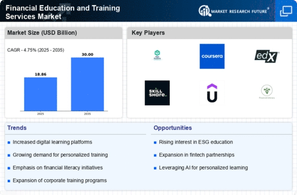 The Asia-Pacific region, with a market size of $3.0 billion, is witnessing a rapid increase in demand for financial education and training services. Factors such as rising disposable incomes, urbanization, and a growing middle class are driving this trend. Governments are recognizing the importance of financial literacy, leading to initiatives aimed at integrating financial education into school curricula and community programs.