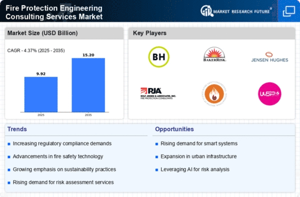 The evolving landscape of regulations and compliance standards is a critical driver for the Fire Protection Engineering Consulting Services Market. Governments and regulatory bodies are continuously updating fire safety codes and standards to enhance public safety. This dynamic environment compels organizations to seek expert guidance to navigate the complexities of compliance. For example, recent updates to building codes in various regions have mandated stricter fire safety measures, prompting businesses to engage fire protection engineering consultants to ensure adherence. As regulatory frameworks become more stringent, the demand for specialized consulting services is likely to increase, presenting opportunities for growth in the market.