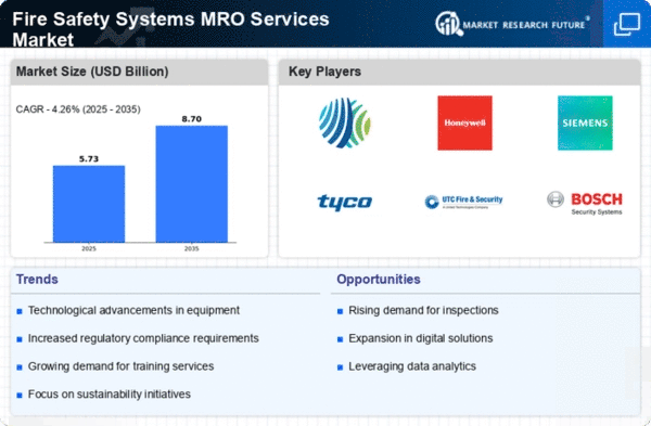Europe's Fire Safety Systems MRO Services Market is projected to reach 1.5B by 2025, driven by stringent regulations and a growing emphasis on safety standards. The European Union's directives on fire safety and building regulations are pivotal in shaping market dynamics. Countries are increasingly investing in fire safety infrastructure, spurred by rising awareness of fire hazards and the need for compliance with safety norms.