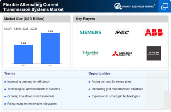 The integration of smart grid technologies is a pivotal driver for the Flexible Alternating Current Transmission Systems Market Fact Market. Smart grids enhance the efficiency and reliability of electricity distribution, allowing for real-time monitoring and management of energy flows. This integration facilitates the incorporation of renewable energy sources, which are increasingly prevalent in energy portfolios. As of 2025, investments in smart grid technologies are projected to reach substantial figures, indicating a robust growth trajectory. The synergy between smart grids and flexible AC transmission systems enables better load management and reduces transmission losses, thereby optimizing overall system performance. Consequently, this trend is likely to bolster the demand for flexible AC transmission solutions, as utilities seek to modernize their infrastructure and improve service delivery.