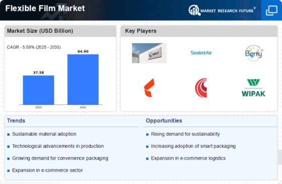 The Flexible Film Market is significantly influenced by the expansion of the food and beverage sector. As consumer preferences shift towards convenience and ready-to-eat products, the demand for flexible packaging solutions is on the rise. Flexible films offer advantages such as lightweight, durability, and extended shelf life, making them ideal for food packaging applications. Recent statistics suggest that the food packaging segment accounts for nearly 60% of the total flexible film market. This trend is expected to continue, driven by the increasing consumption of packaged foods and beverages. Consequently, the Flexible Film Market is likely to benefit from this growth, as manufacturers seek to innovate and provide packaging solutions that meet the evolving needs of consumers.