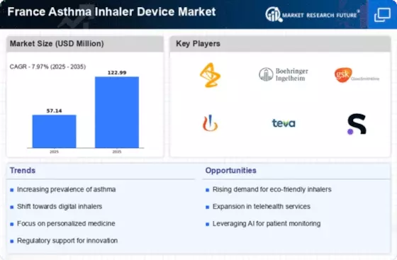 Technological advancements in inhaler devices are transforming the France Asthma Inhaler Device Market. Innovations such as smart inhalers equipped with digital tracking capabilities are gaining traction among patients and healthcare providers. These devices not only enhance medication adherence but also provide valuable data for personalized asthma management. The integration of technology into inhalers is expected to improve patient outcomes and satisfaction, thereby driving market growth. Furthermore, the development of environmentally friendly inhalers aligns with the increasing emphasis on sustainability, potentially attracting environmentally conscious consumers within the France Asthma Inhaler Device Market.