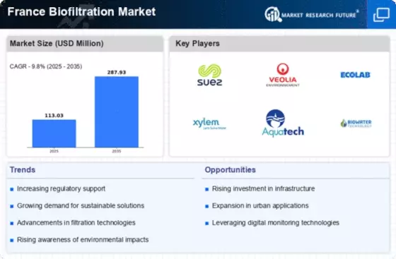 Technological innovations are significantly influencing the France Biofiltration Market. Advances in biofiltration technologies, such as the development of engineered media and enhanced microbial processes, are improving the efficiency and effectiveness of these systems. For example, the introduction of hybrid biofiltration systems that combine various filtration methods has shown promising results in treating complex wastewater streams. Furthermore, the integration of smart technologies, such as IoT sensors for real-time monitoring, is enhancing the operational capabilities of biofiltration systems. These innovations not only optimize performance but also reduce maintenance costs, making biofiltration a more attractive option for municipalities and industries. As these technologies continue to evolve, they are likely to drive the growth of the France Biofiltration Market, positioning it as a leader in sustainable water management solutions.