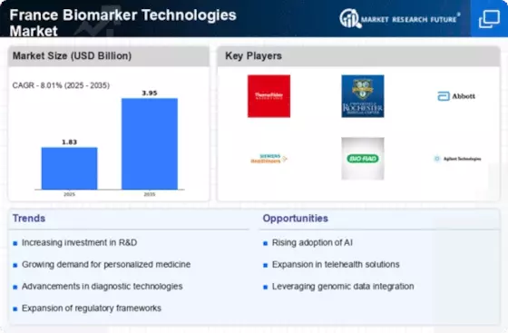 The increasing incidence of chronic diseases in France is a pivotal driver for the France Biomarker Technologies Market. Conditions such as cancer, diabetes, and cardiovascular diseases are becoming more prevalent, necessitating advanced diagnostic tools. According to recent health statistics, chronic diseases account for approximately 80 percent of healthcare costs in France. This trend underscores the need for innovative biomarker technologies that can facilitate early detection and personalized treatment plans. As healthcare providers seek to improve patient outcomes, the demand for biomarker-based diagnostics is likely to surge, propelling market growth. Furthermore, the French government has been investing in healthcare initiatives aimed at enhancing disease management, which may further stimulate the adoption of biomarker technologies in clinical settings.