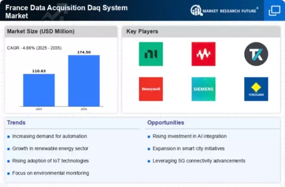 Investments in research and development (R&D) are driving innovation within the France Data Acquisition Daq System Market. Both public and private sectors are increasingly allocating resources towards the development of advanced data acquisition technologies. This focus on R&D is essential for creating next-generation systems that can meet the evolving needs of various industries, including automotive, aerospace, and energy. The French government has been supportive of R&D initiatives, providing funding and incentives for companies that engage in innovative projects. As a result, the market is likely to benefit from a steady influx of new technologies and solutions, fostering growth and enhancing the overall competitiveness of the data acquisition sector in France.