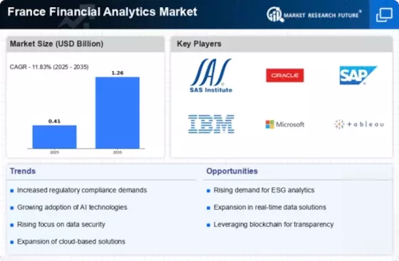 The evolving regulatory landscape in France is a critical driver of the Financial Analytics Market. With increasing scrutiny from regulatory bodies, financial institutions are compelled to adopt robust analytics solutions to ensure compliance with new regulations. Recent legislative changes have necessitated enhanced reporting and transparency, prompting a surge in demand for analytics tools that can facilitate these requirements. It is estimated that compliance-related investments in financial analytics will grow by 15 percent over the next year as organizations strive to meet regulatory standards. This focus on compliance not only mitigates risks but also drives innovation within the France Financial Analytics Market, as firms seek to leverage analytics for strategic advantage.
