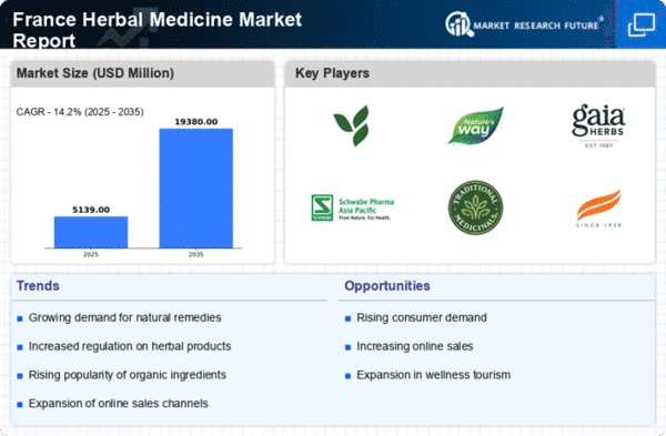 The herbal medicine market in France benefits from a supportive regulatory environment that encourages the use of herbal products. The French government has implemented various policies aimed at promoting the safety and efficacy of herbal medicines. For instance, the European Union's Traditional Herbal Medicinal Products Directive provides a framework for the registration and regulation of herbal products. This regulatory support not only enhances consumer confidence but also fosters innovation within the herbal medicine market. As a result, manufacturers are more inclined to invest in research and development, leading to the introduction of new and improved herbal formulations. This regulatory landscape is expected to contribute positively to the market's growth trajectory in the coming years.